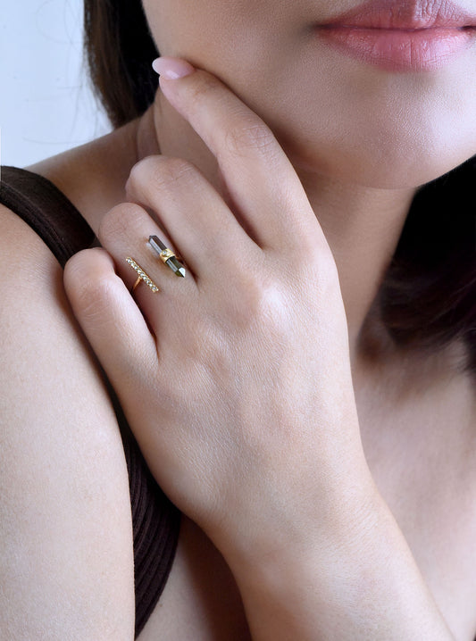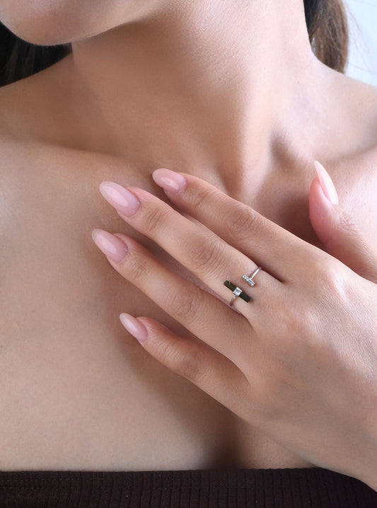 18K Solid Gold Natural Tourmaline with Diamond Slice Ring