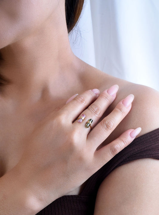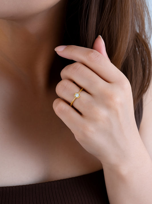 Center Bezel Quartz Herkimer Diamond Open Ring