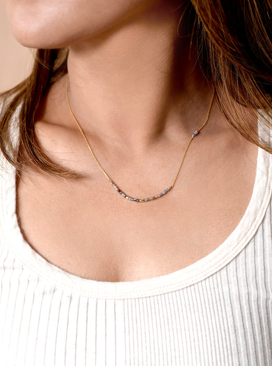 Tourmaline Bar Attached Herkimer Quartz with Diamond Necklace