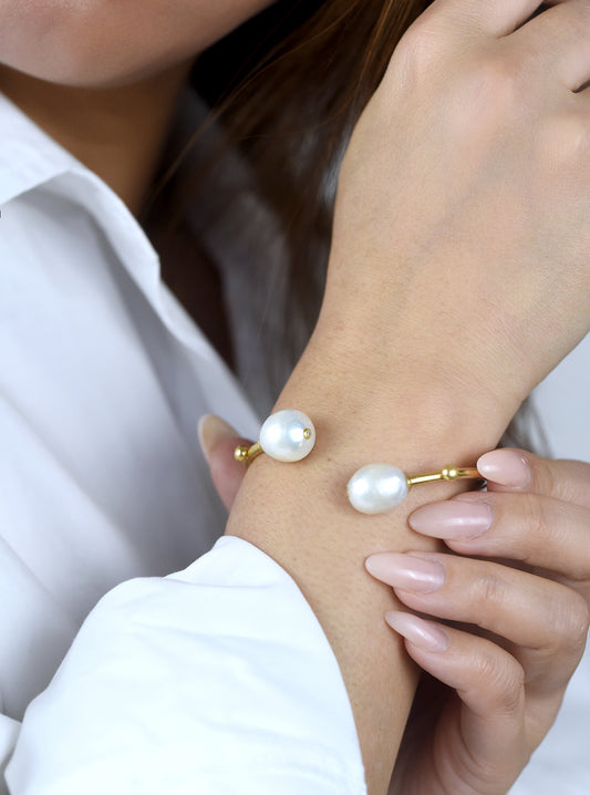 Hand Crafted Double Baroque Pearl Minimalist Bangle