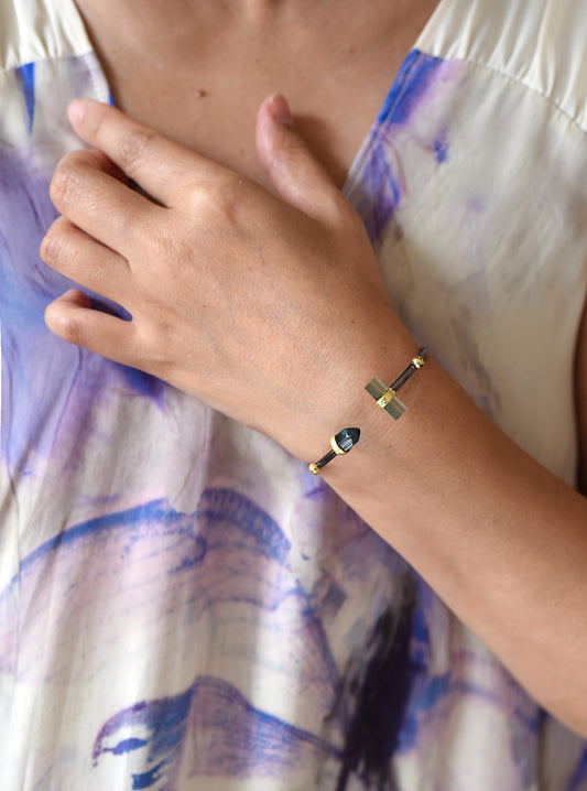 Herkimer Quartz with Tourmaline and Diamond Bangle
