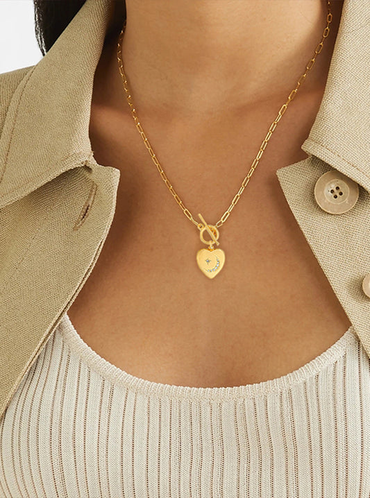 18" Trendy Heart-shaped Star & Moon Tie Necklace
