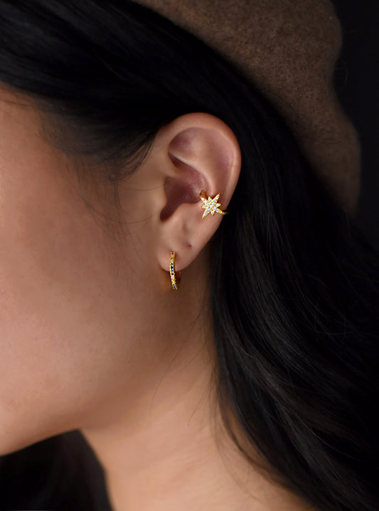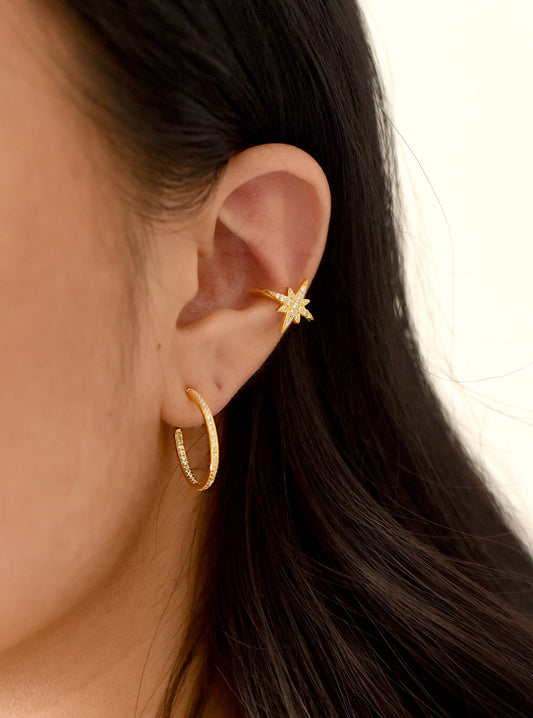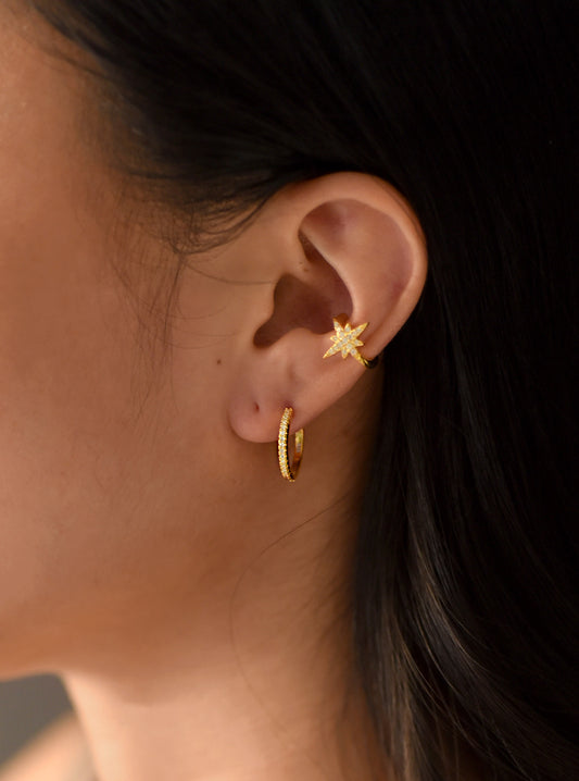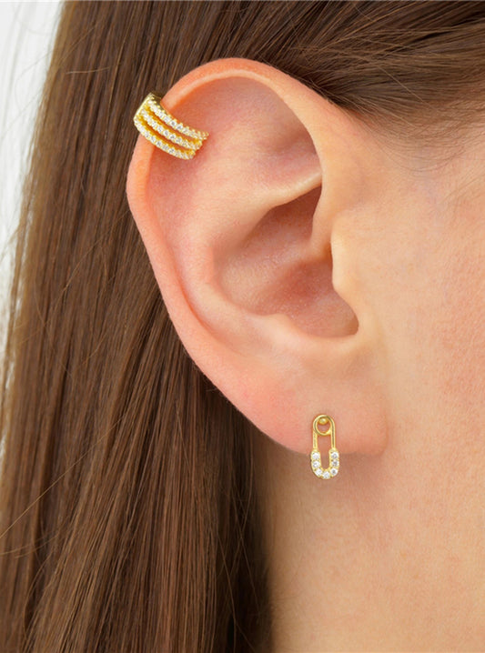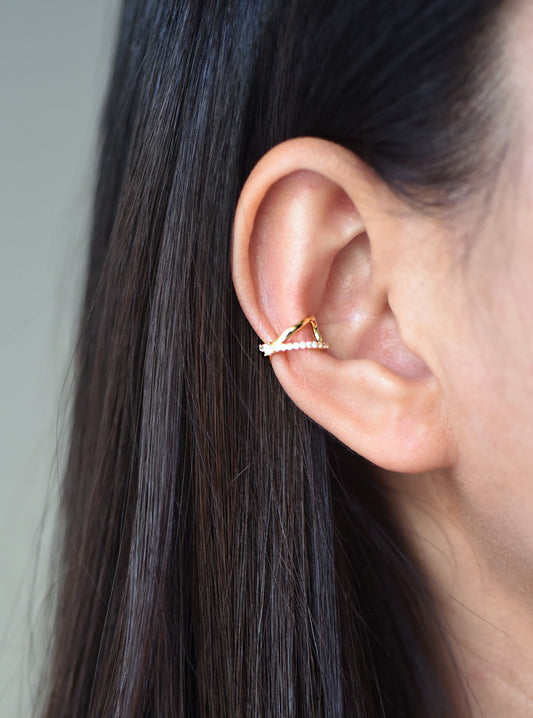 Simple X Style Ring with CZ Ear Cuffs -Single