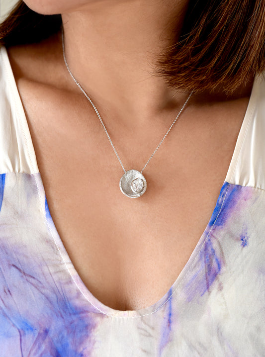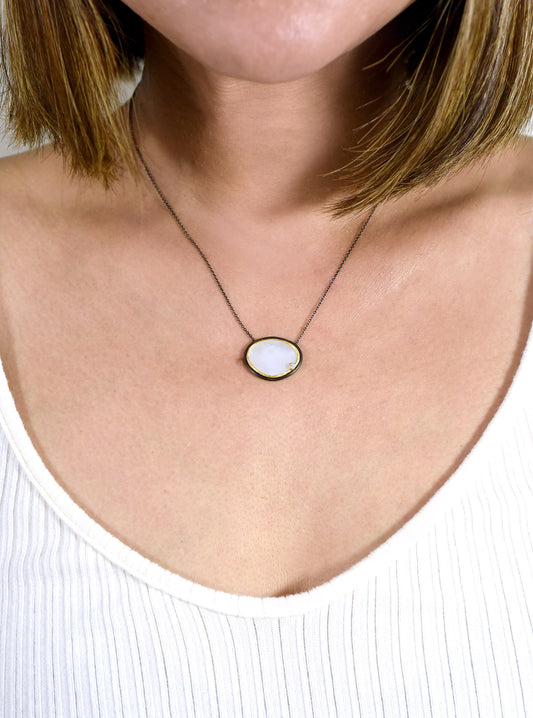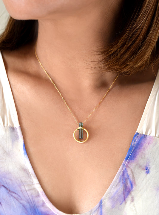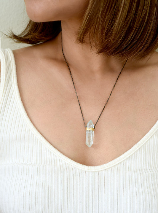 Tourmaline Bar Attached Herkimer Quartz with Diamond Necklace