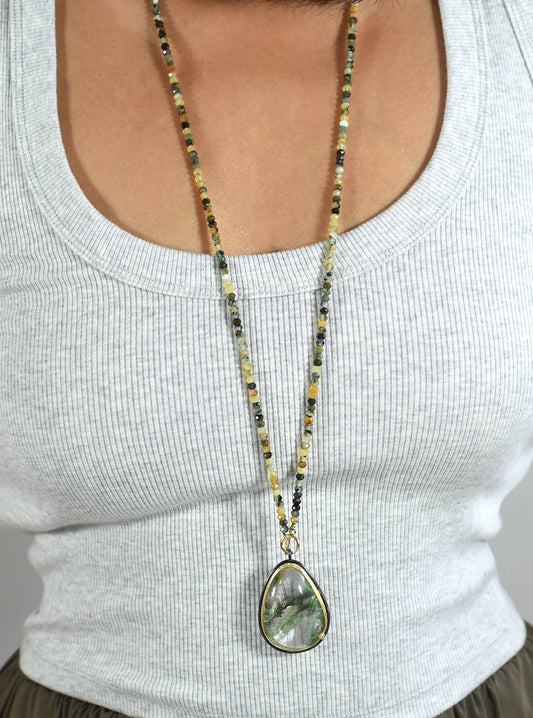 Teardrop Phantom Quartz Statement Beaded Necklace