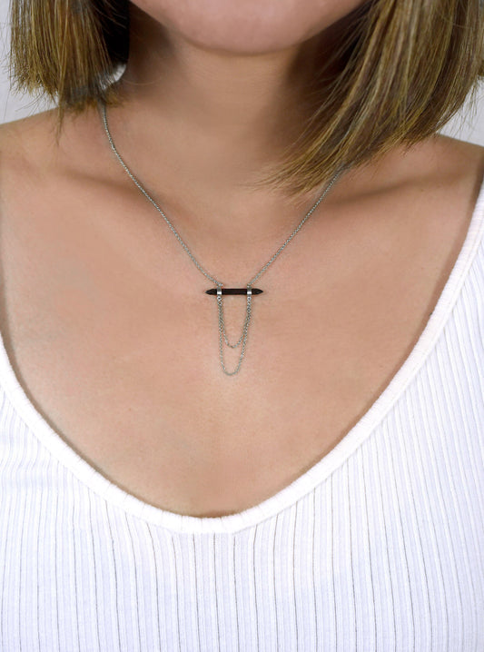 Tourmaline Bar Drop Chain with Dimond Necklace