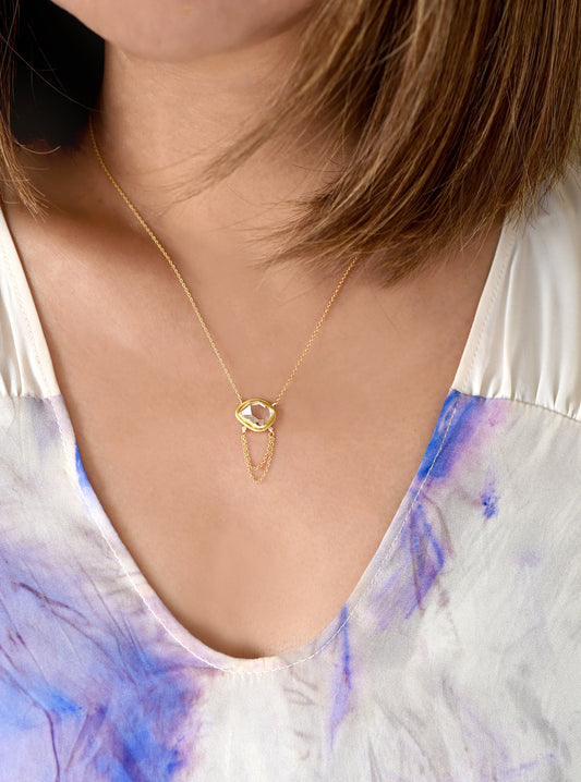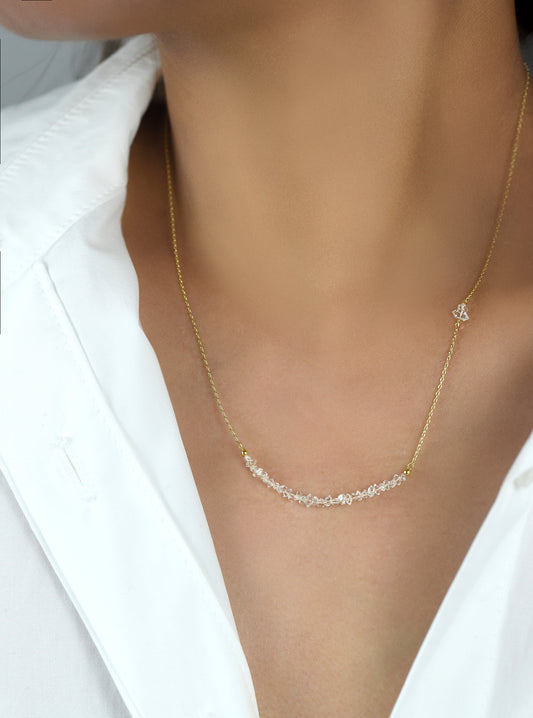Herkimer Quartz Bar Drop Chain with Dimond Necklace
