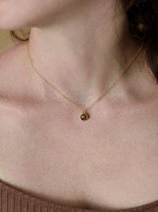 Mini Natural Sapphire with Diamond Round Necklace