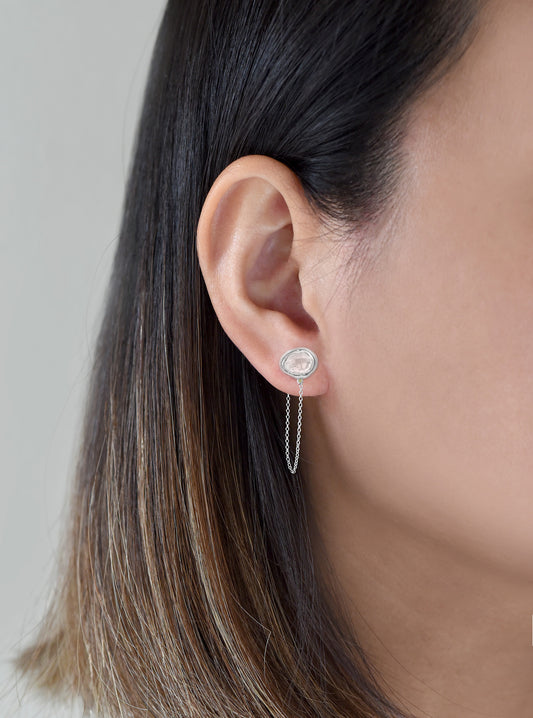 Mini Herkimer Diamond Drop Chain with Diamond Earrings