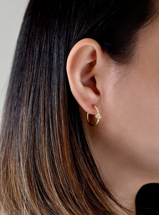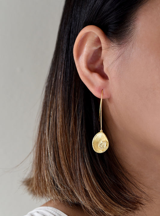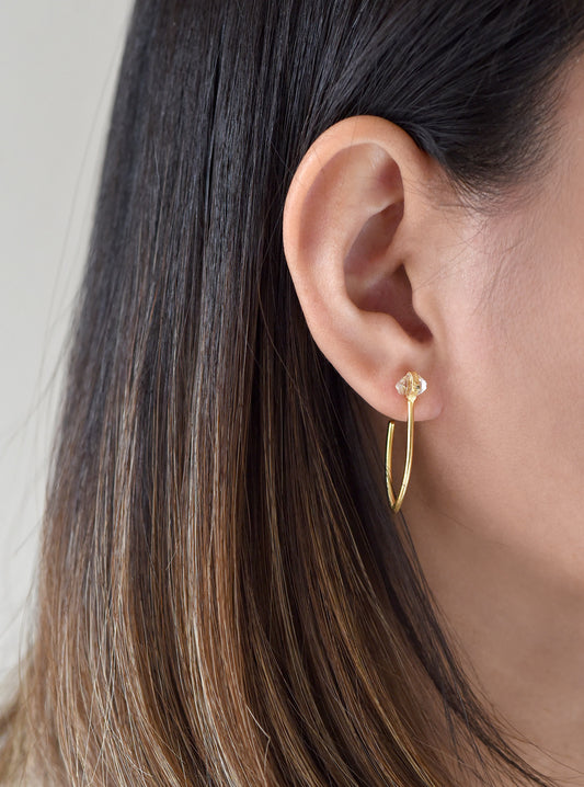 Radiant Aura Herkimer Diamond Long Hoop Earrings
