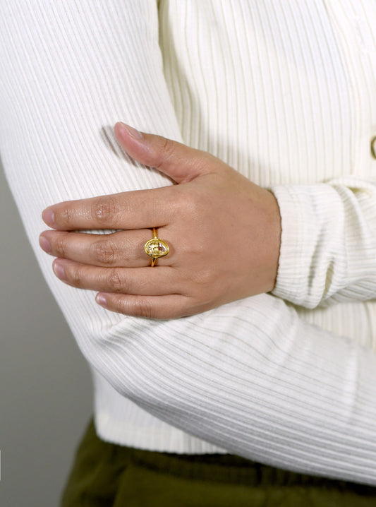 Mini Double Bezel Herkimer Quartz with Diamond Ring