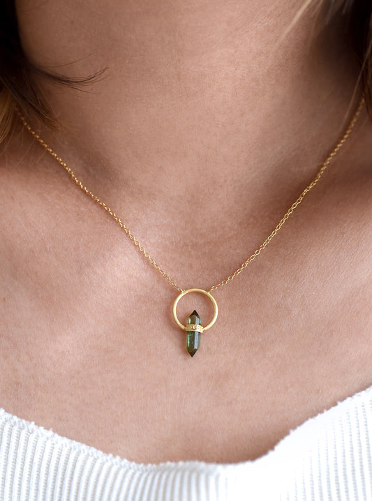 Tourmaline Halo Necklace with Diamond