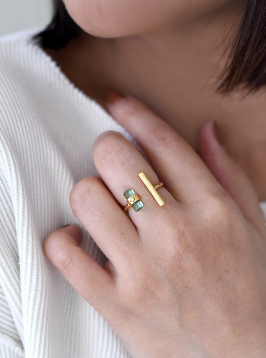 Plain Bar Tourmaline With Diamond Ring