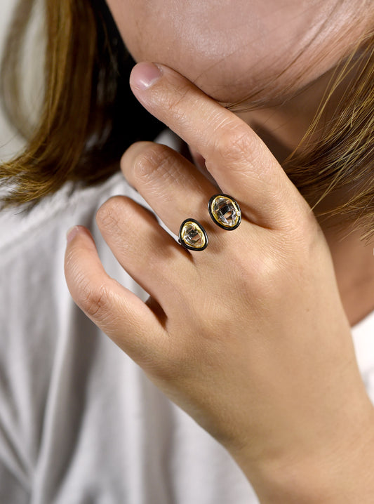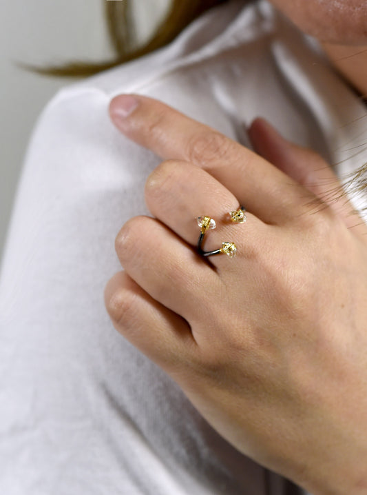 Double Quartz Herkimer Diamond Open Ring