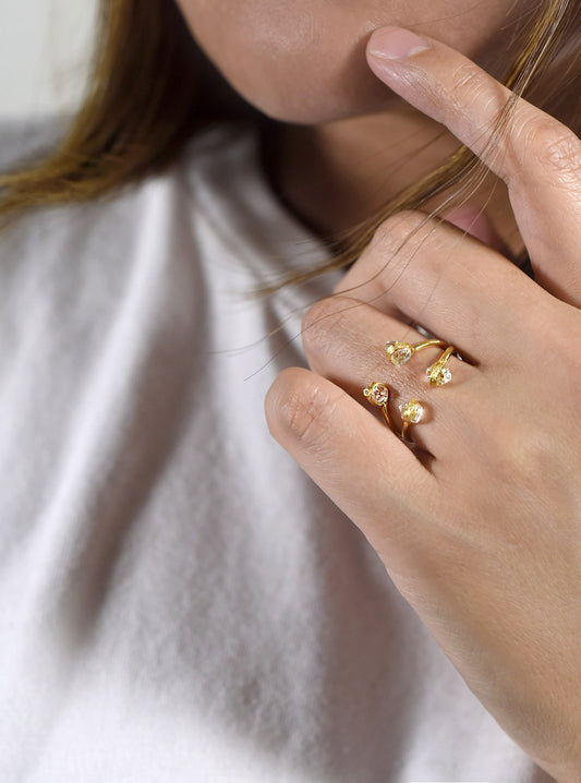 3 Prong Quartz Herkimer Diamond Open Ring