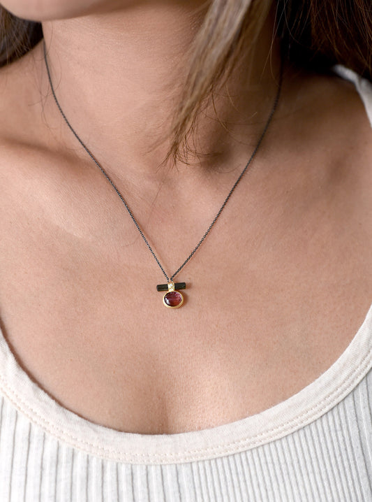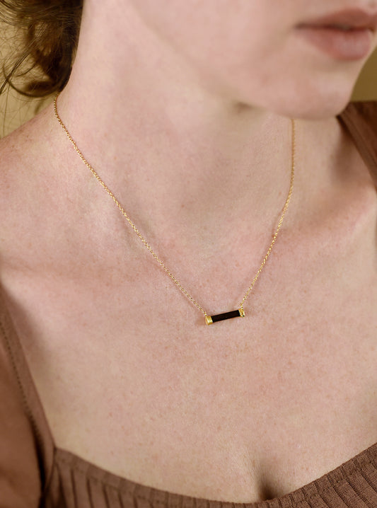 Double Tourmaline Horizontal Bar With Diamond Necklace
