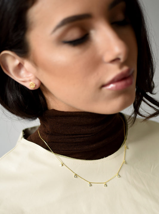 Mini Herkimer Diamond Drop Chain with Diamond Earrings