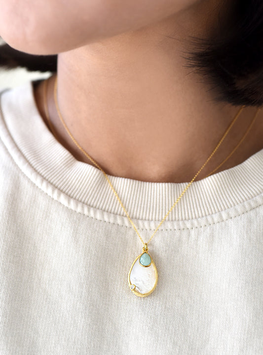 Shining Druzy Small Teardrop Genuine Diamond Necklace