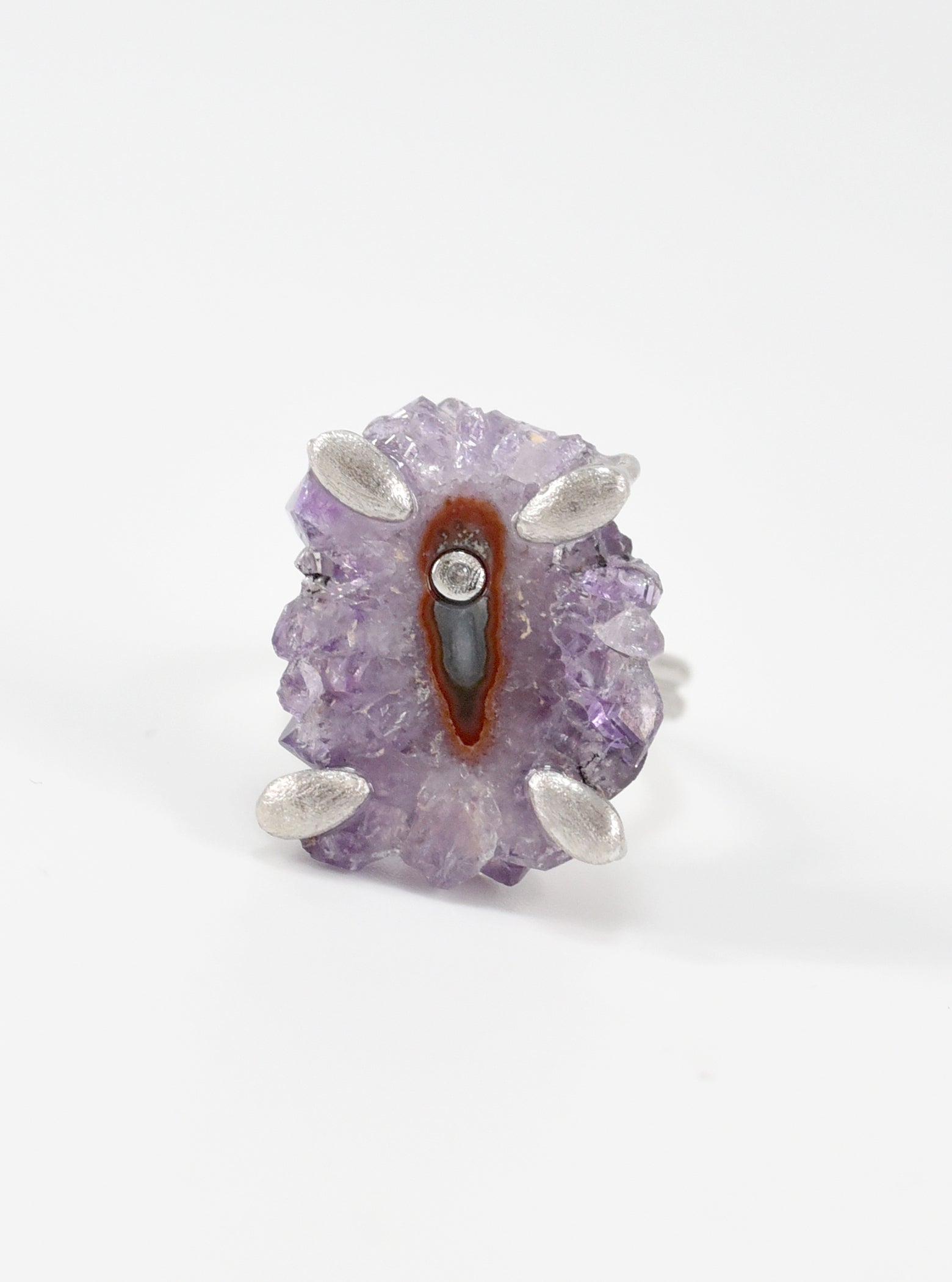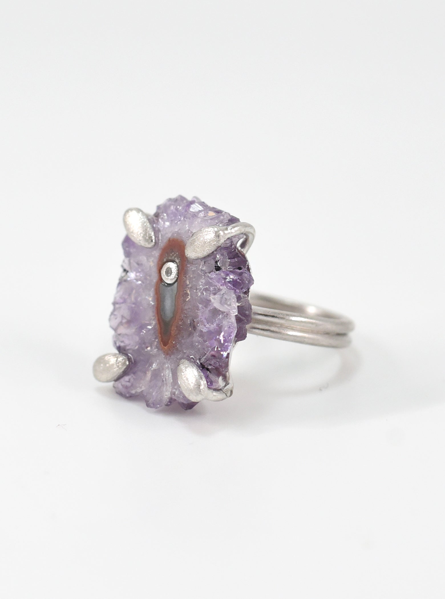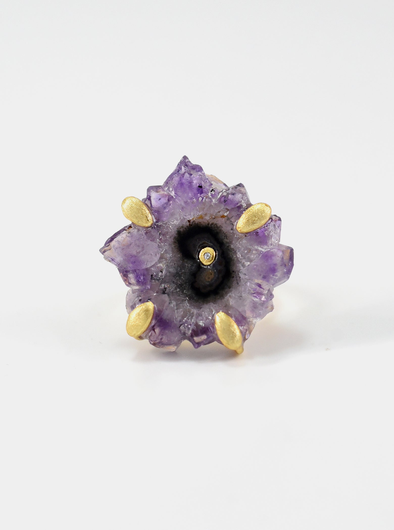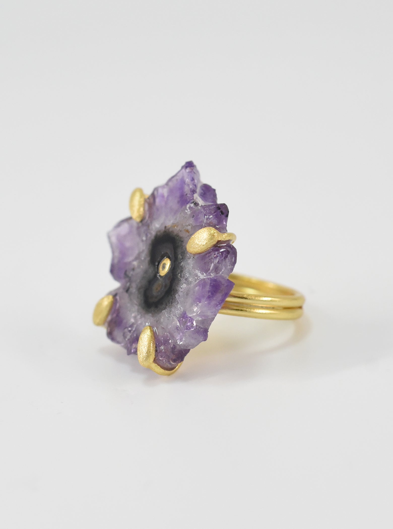 Ring featuring a one of a kind natural amethyst quartz stalactite flower.