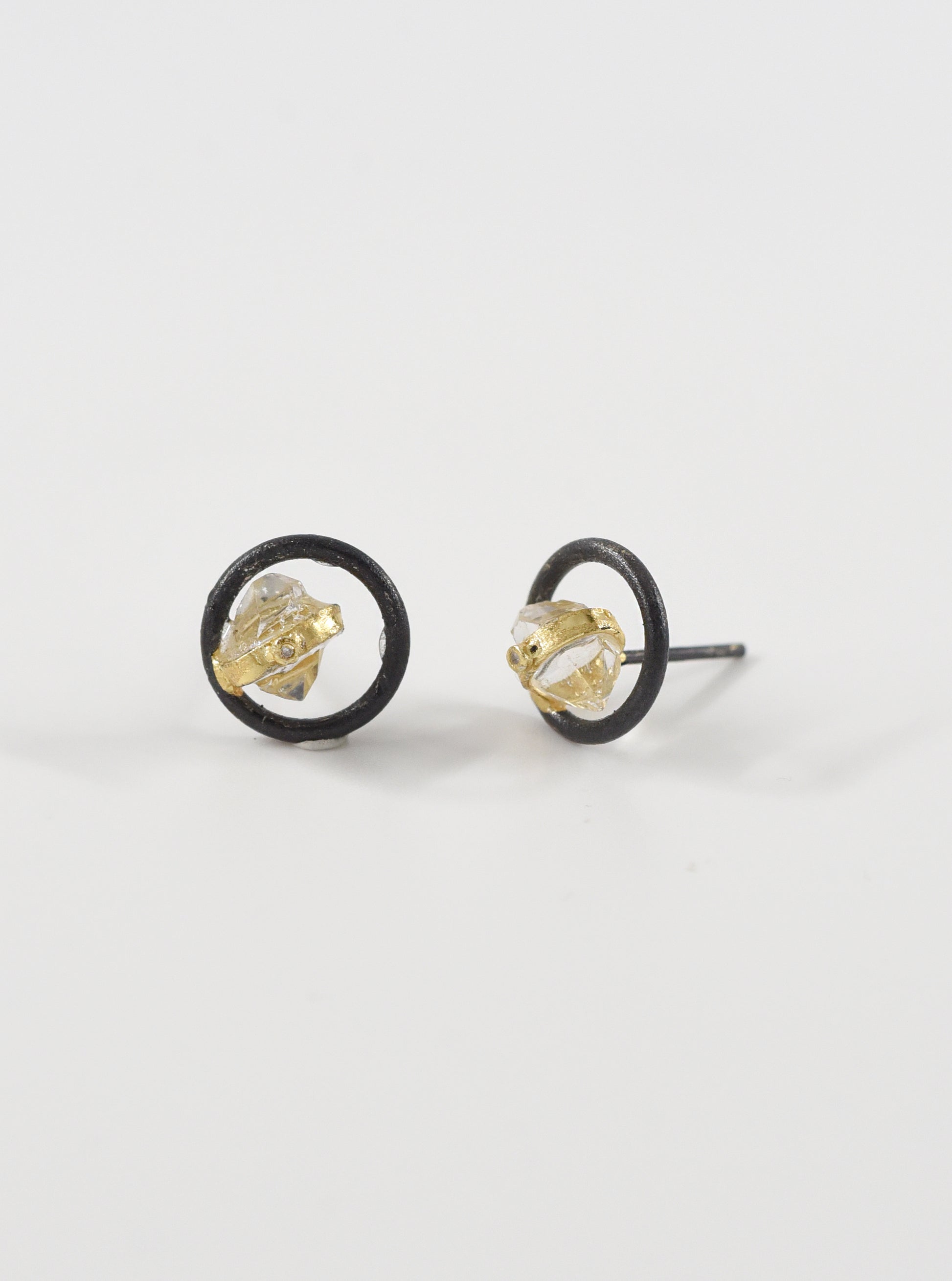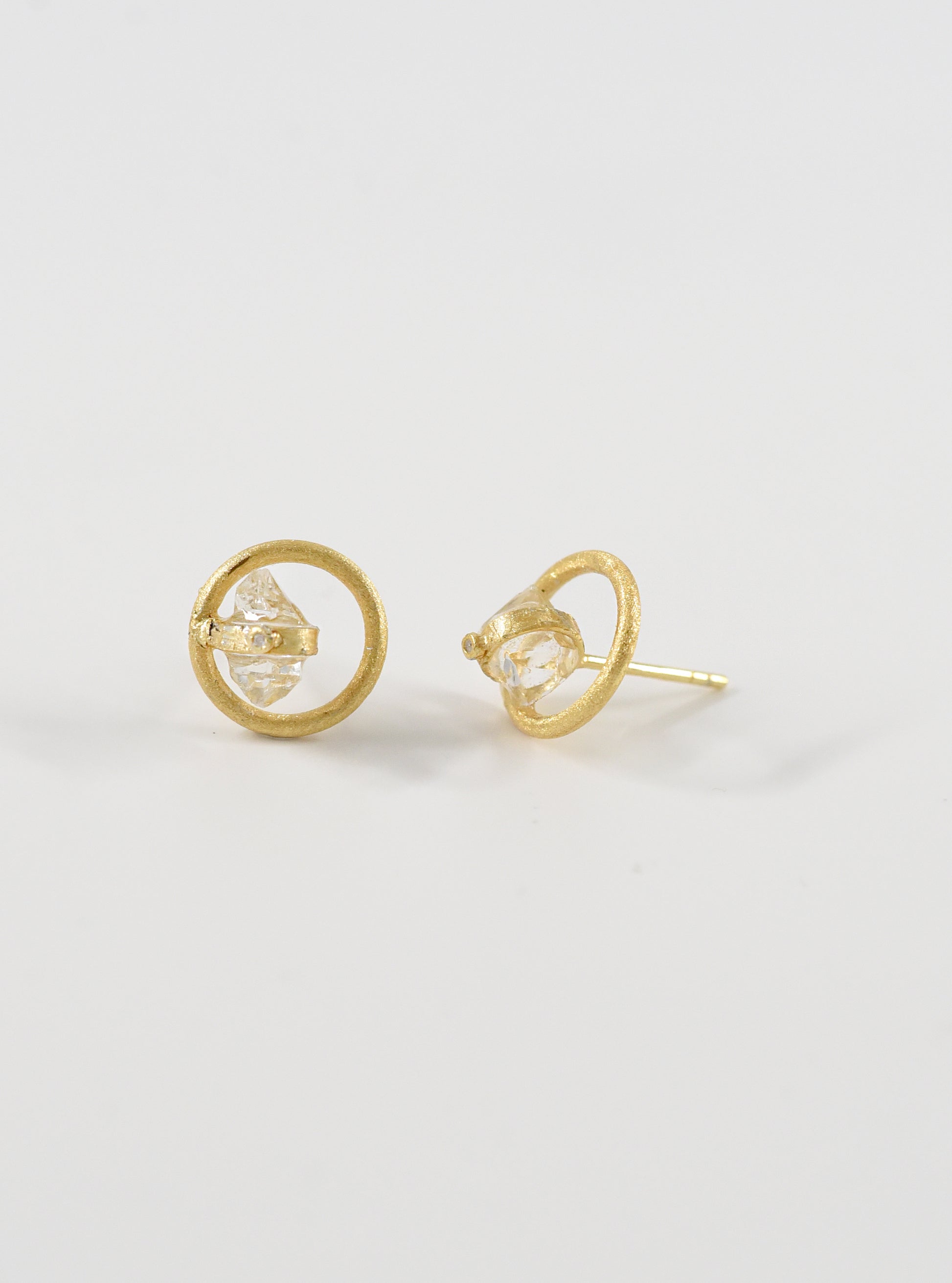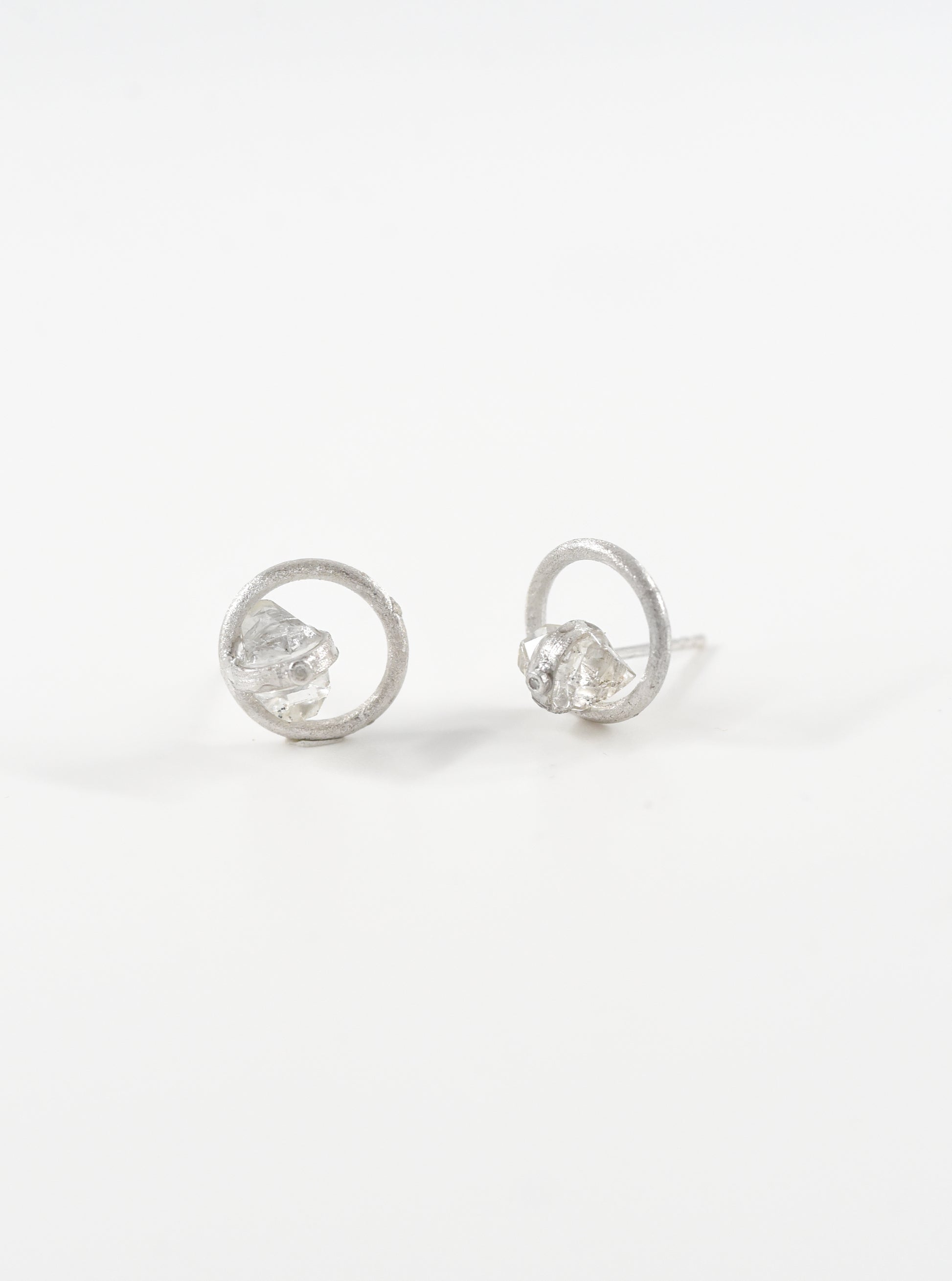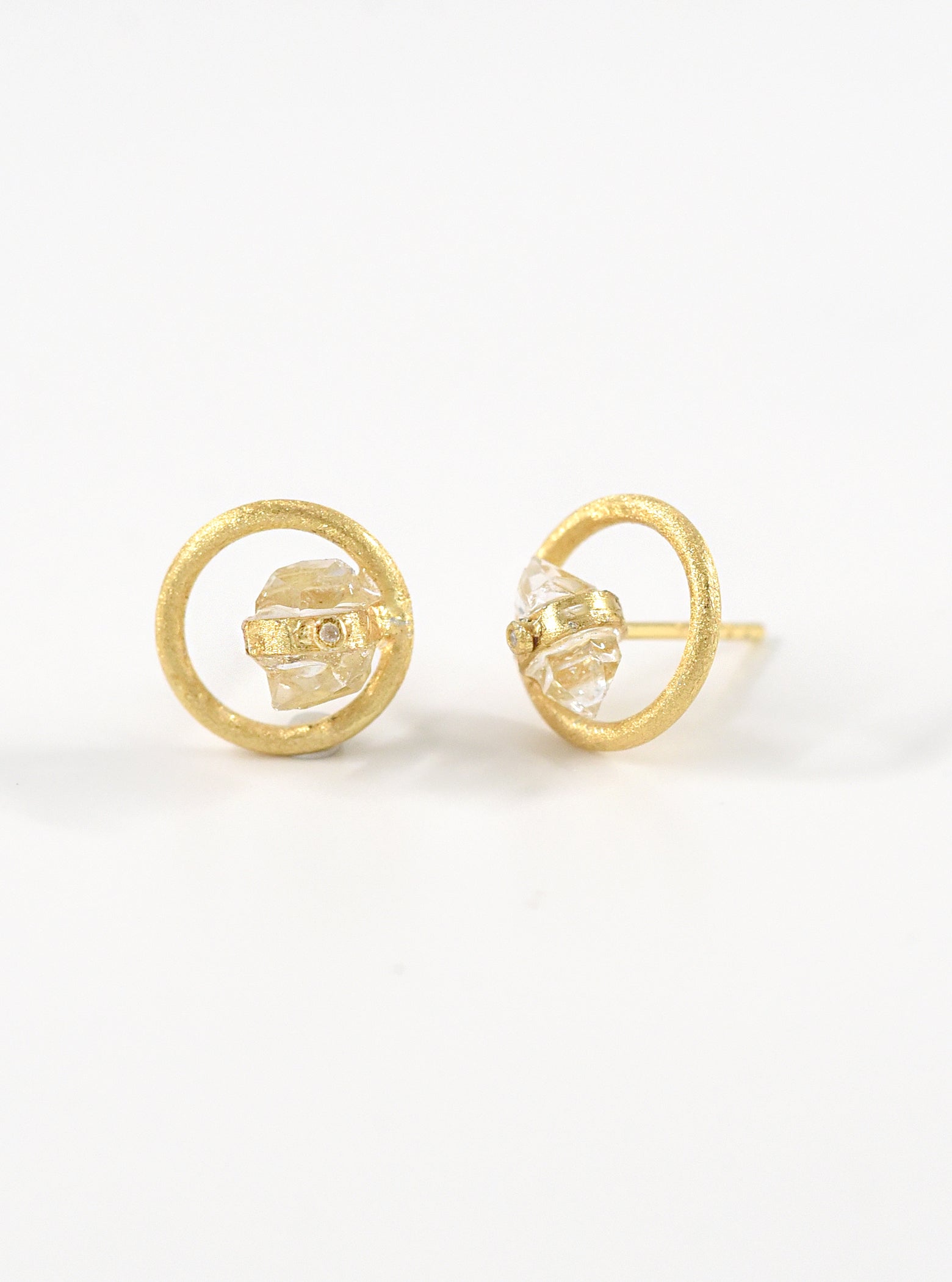 Circle of Light Herkimer Quartz with Diamond Stud Earrings