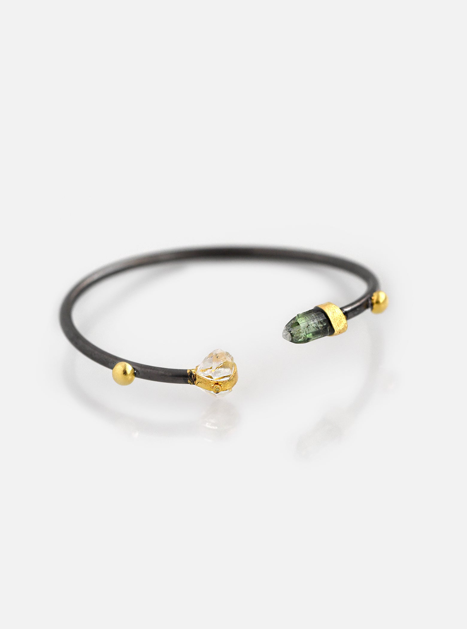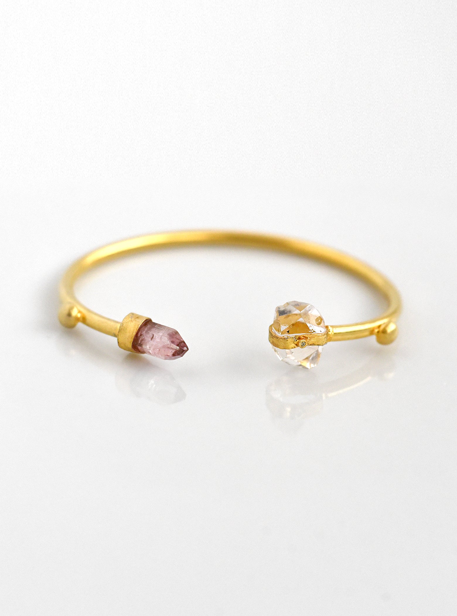 Herkimer Quartz with Tourmaline and Diamond Bangle