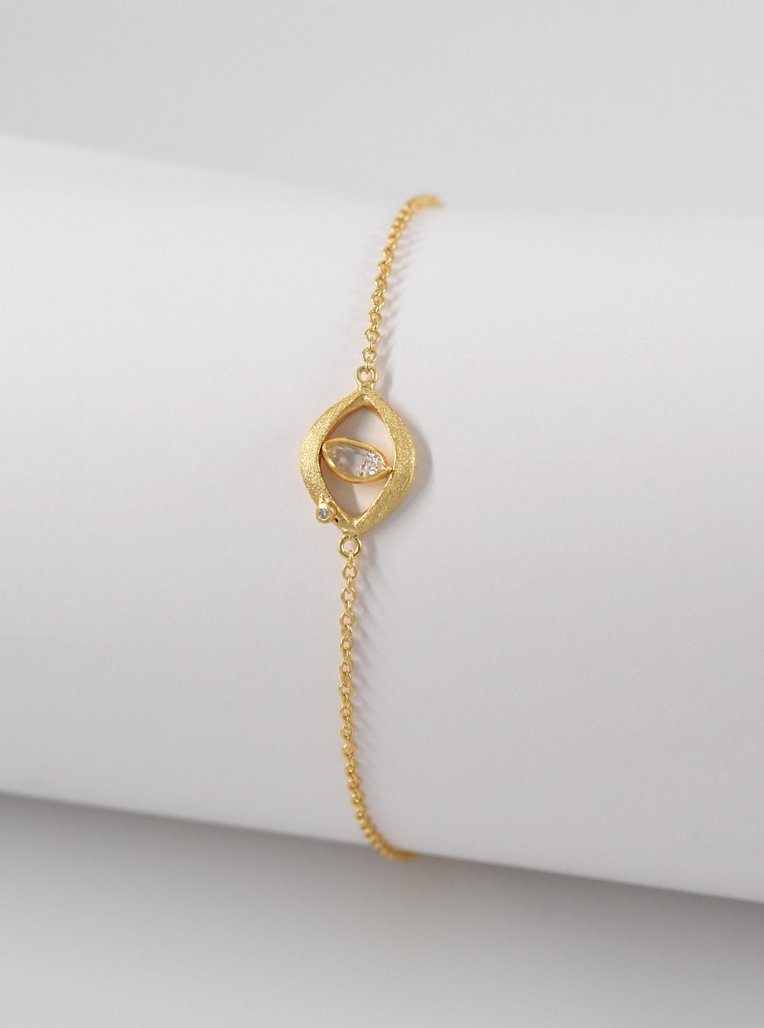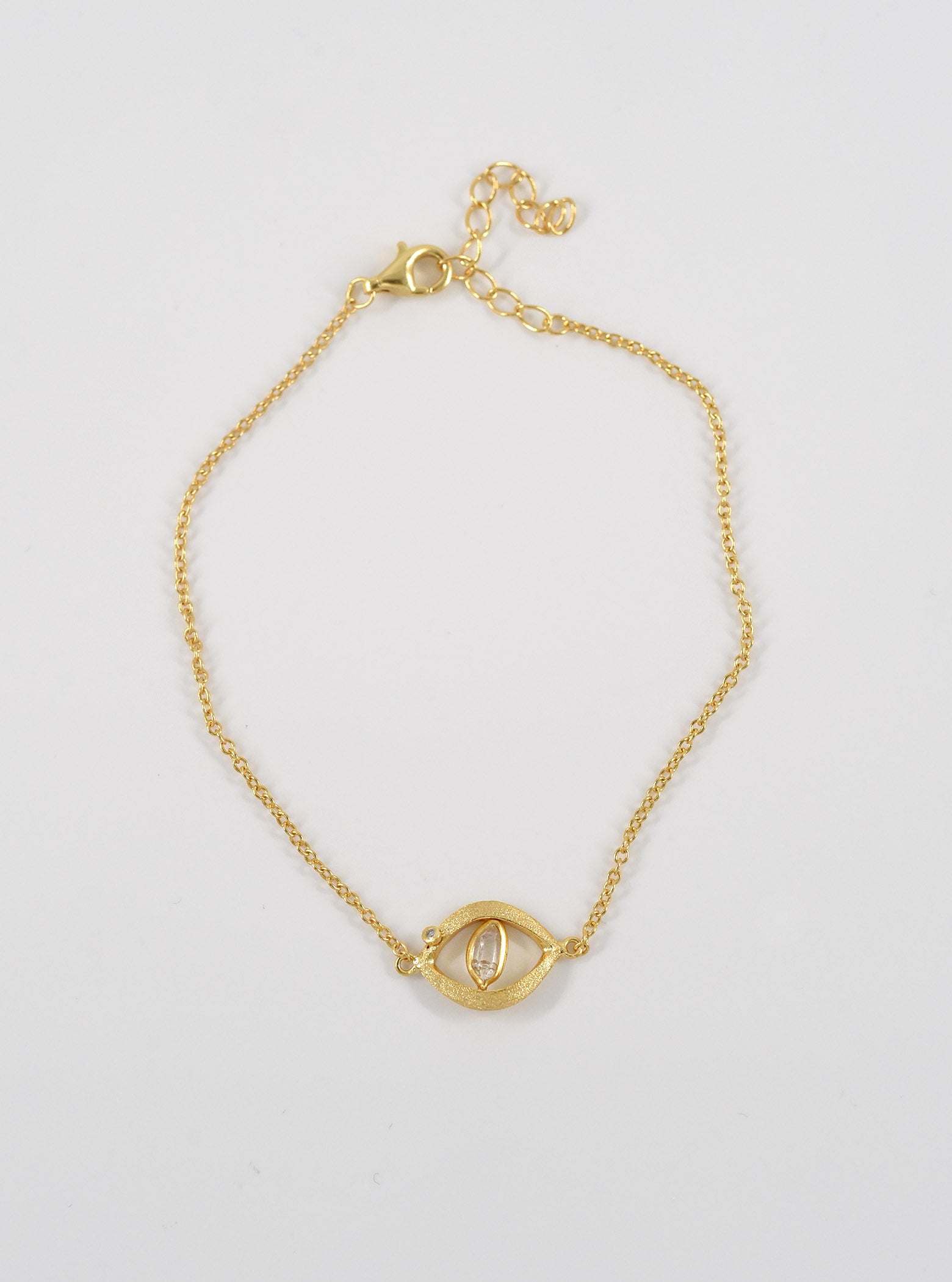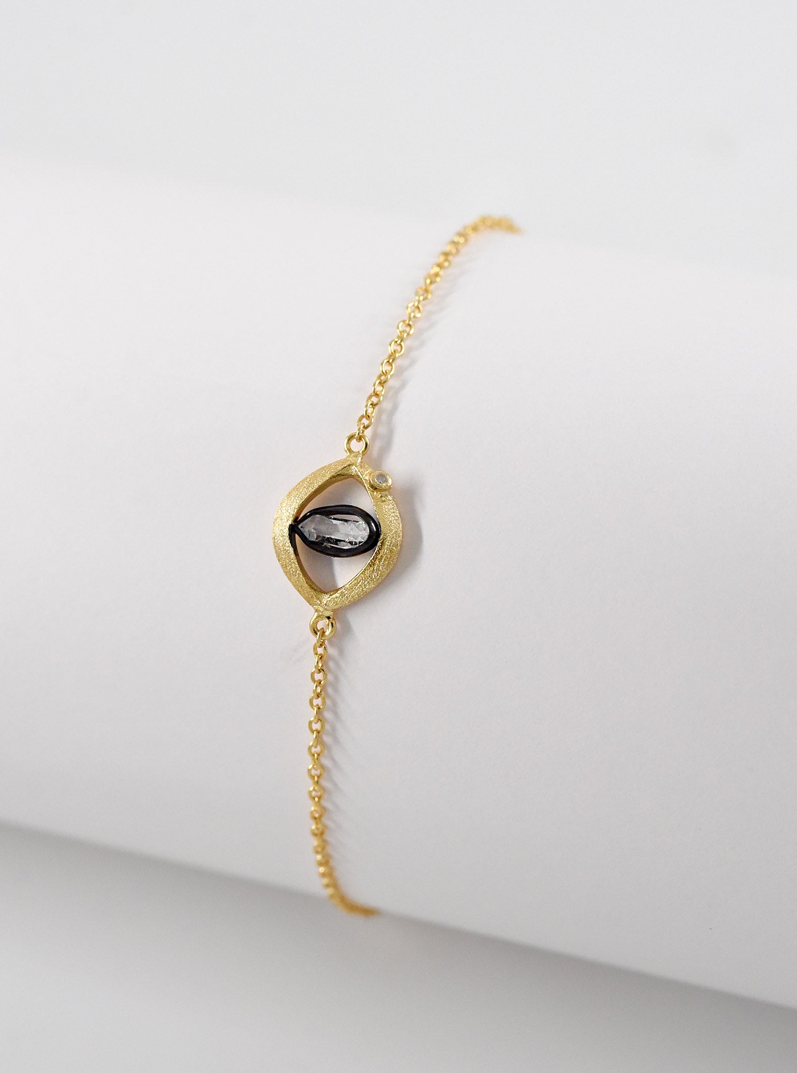 Bracelet featuring a one of a kind natural Herkimer diamond in a hand crafted chain setting, with a single diamond accent and brushed finished.