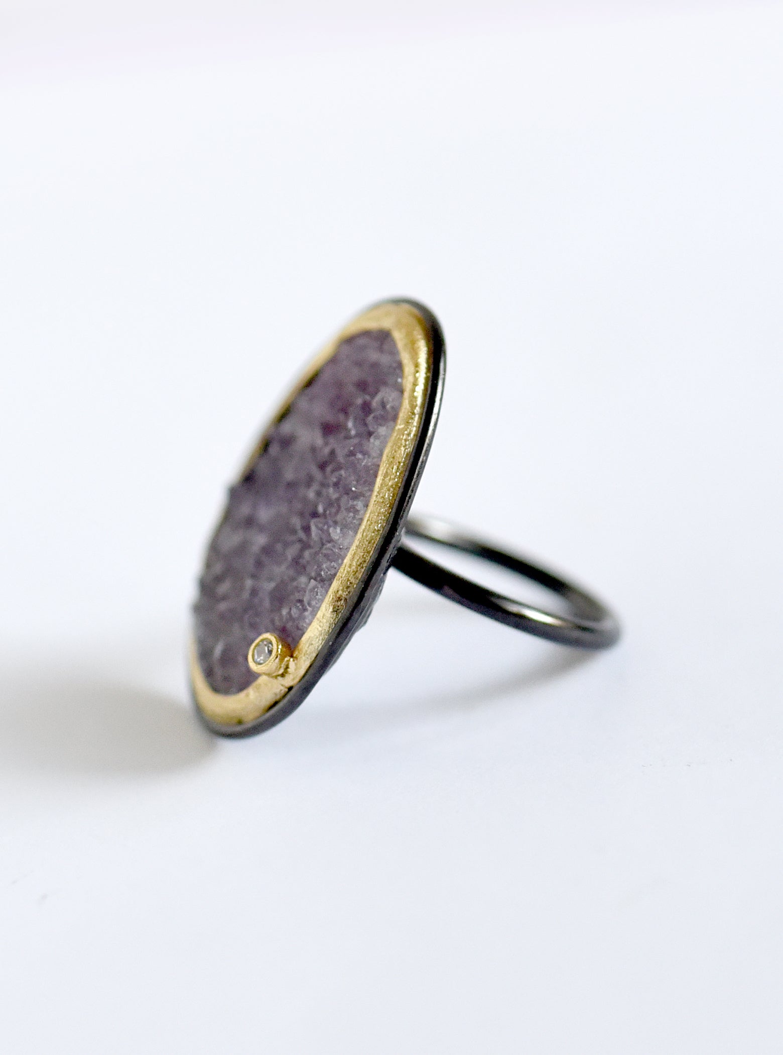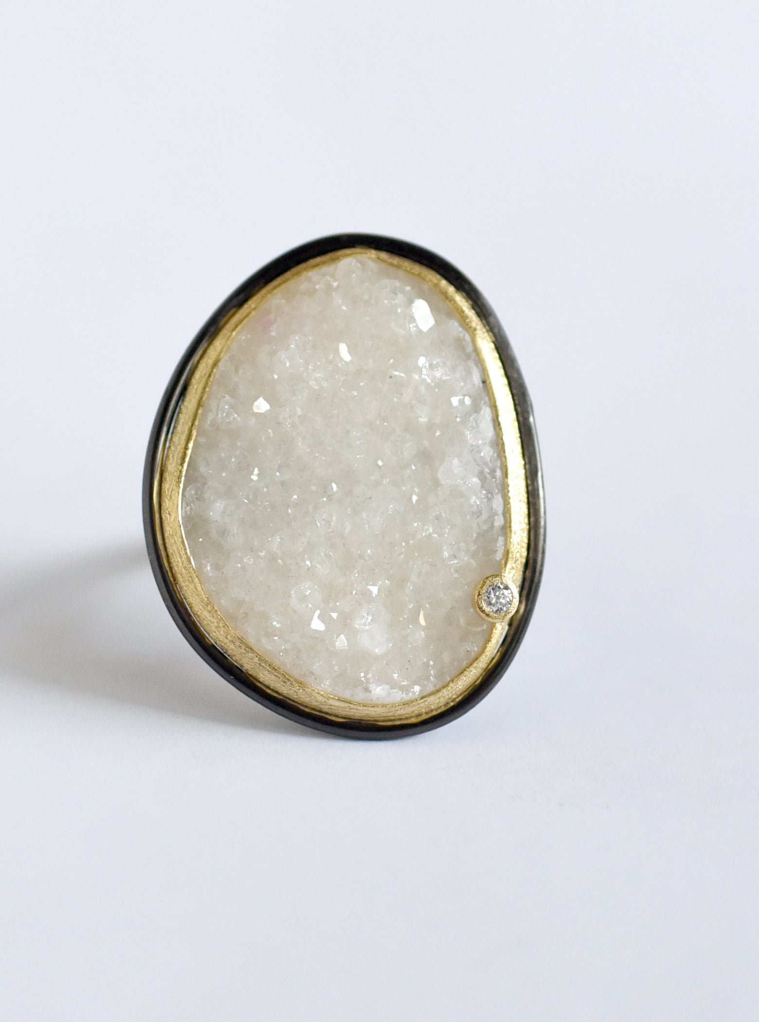 - Natural quartz druzy and cubic zirconia