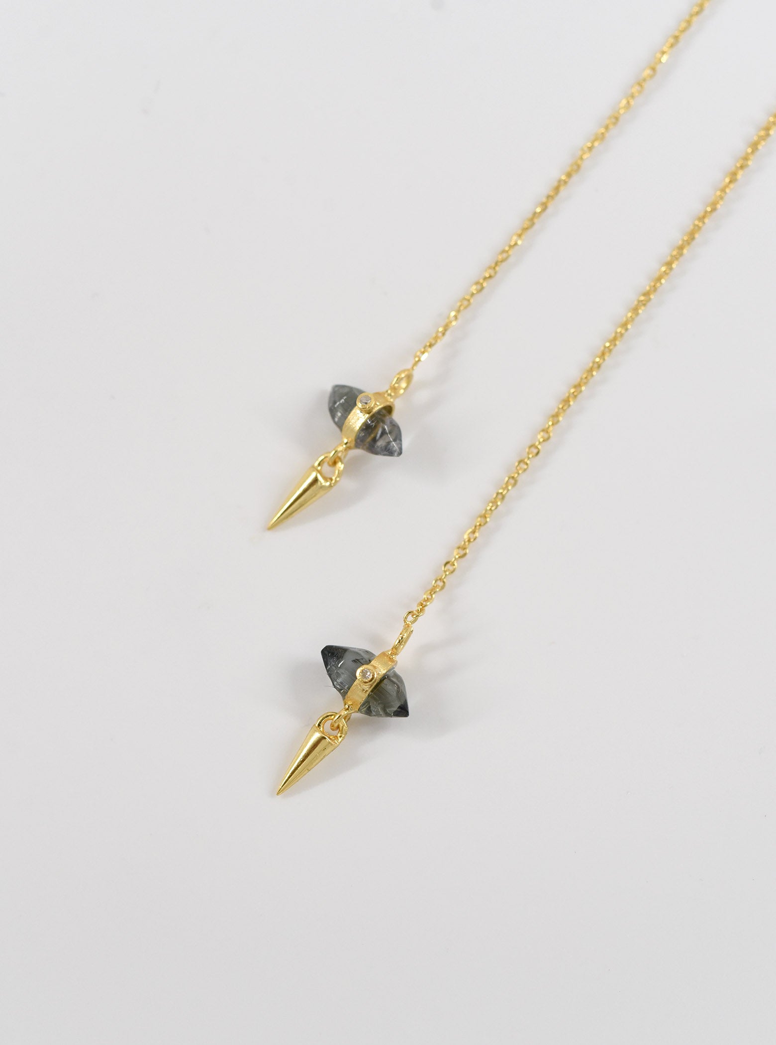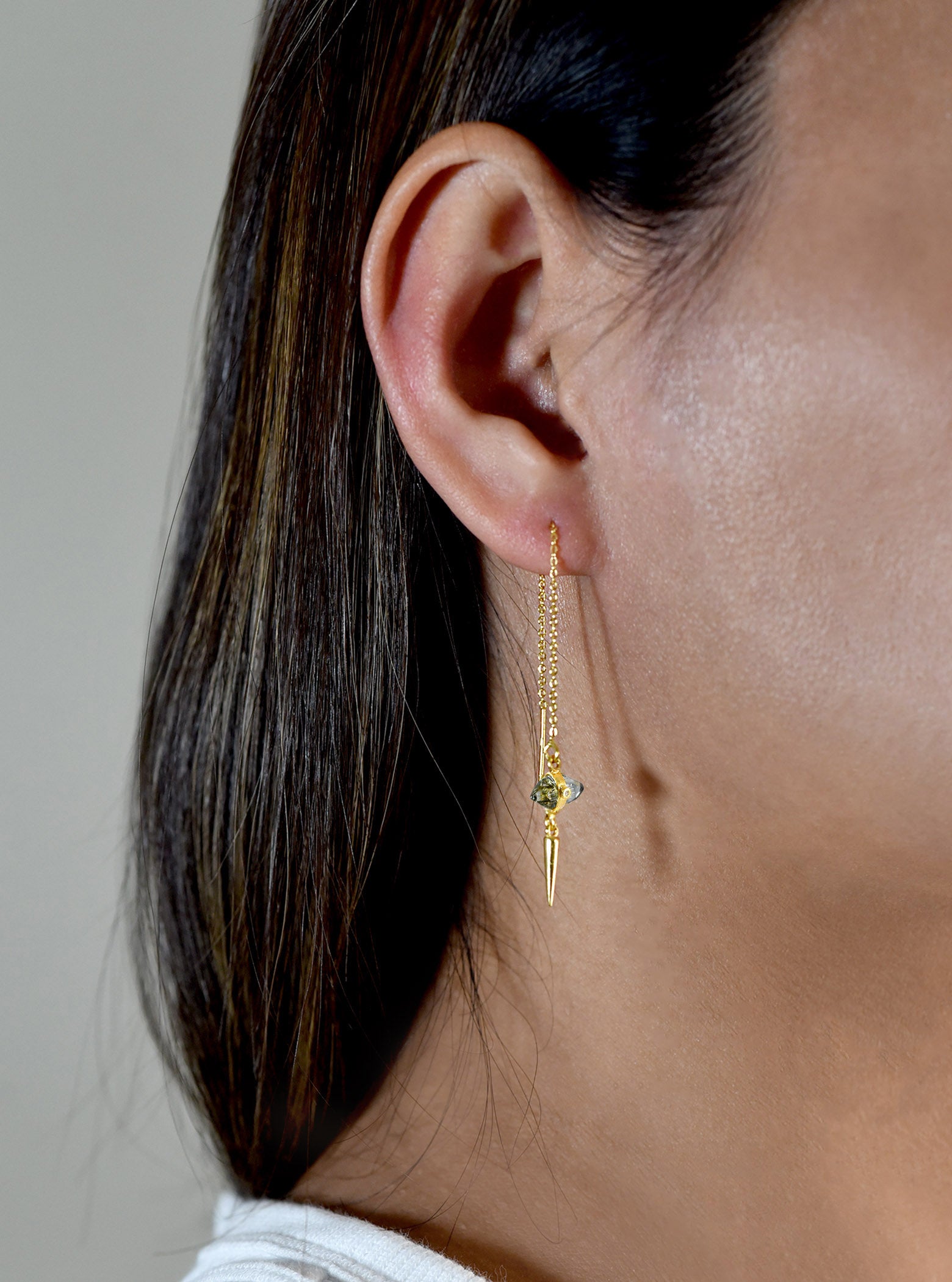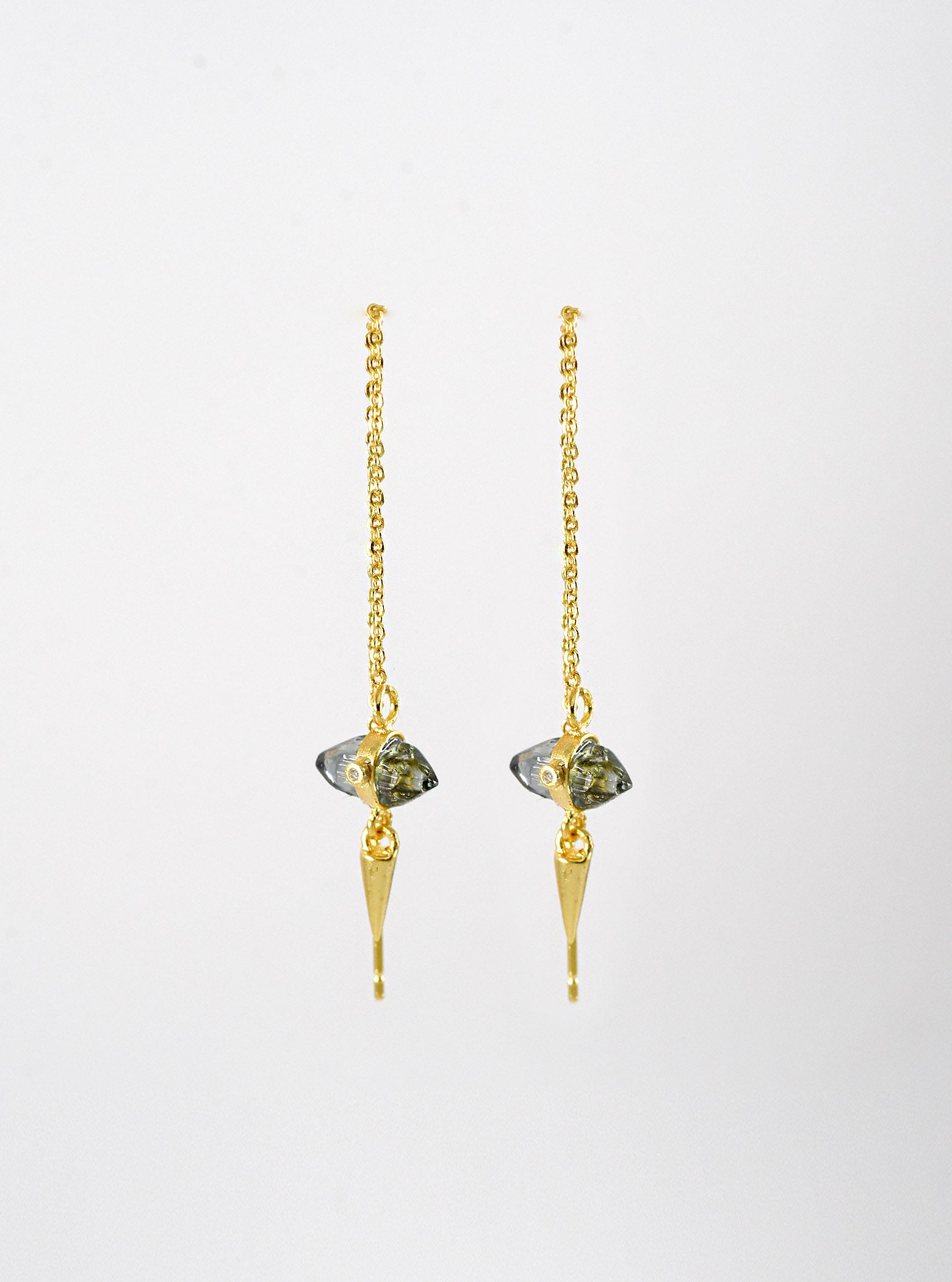 Featuring a one of a kind natural Tourmaline with chain in a hand crafted setting, sparkling natural diamond accents and brushed finished with stud back closures.