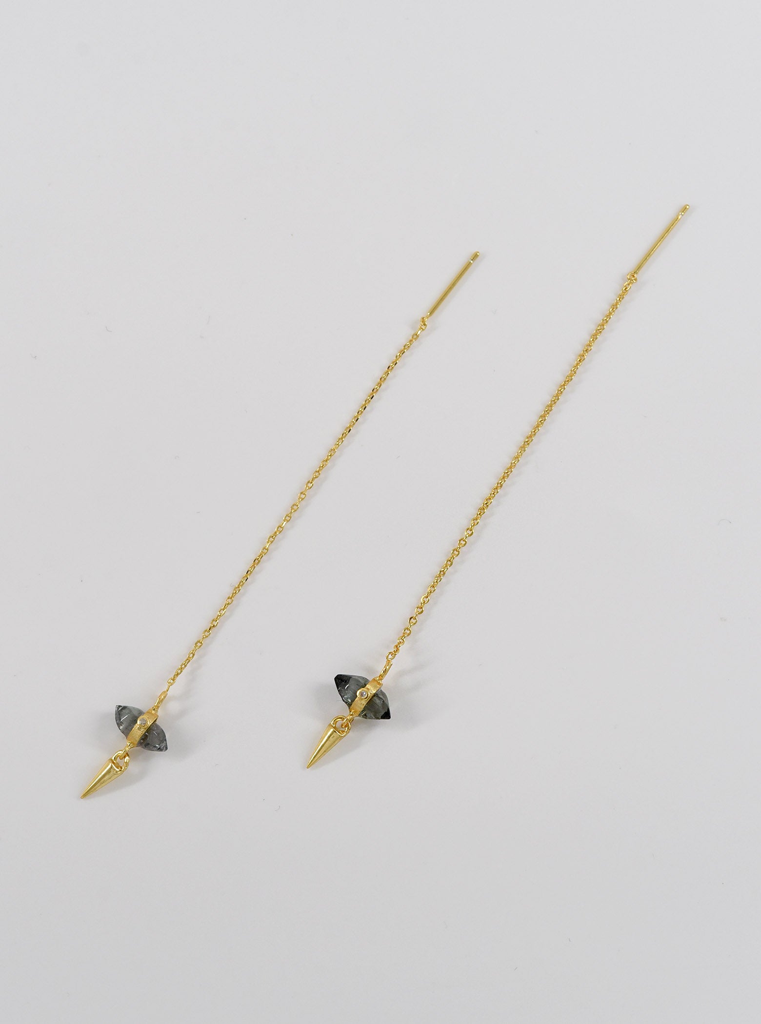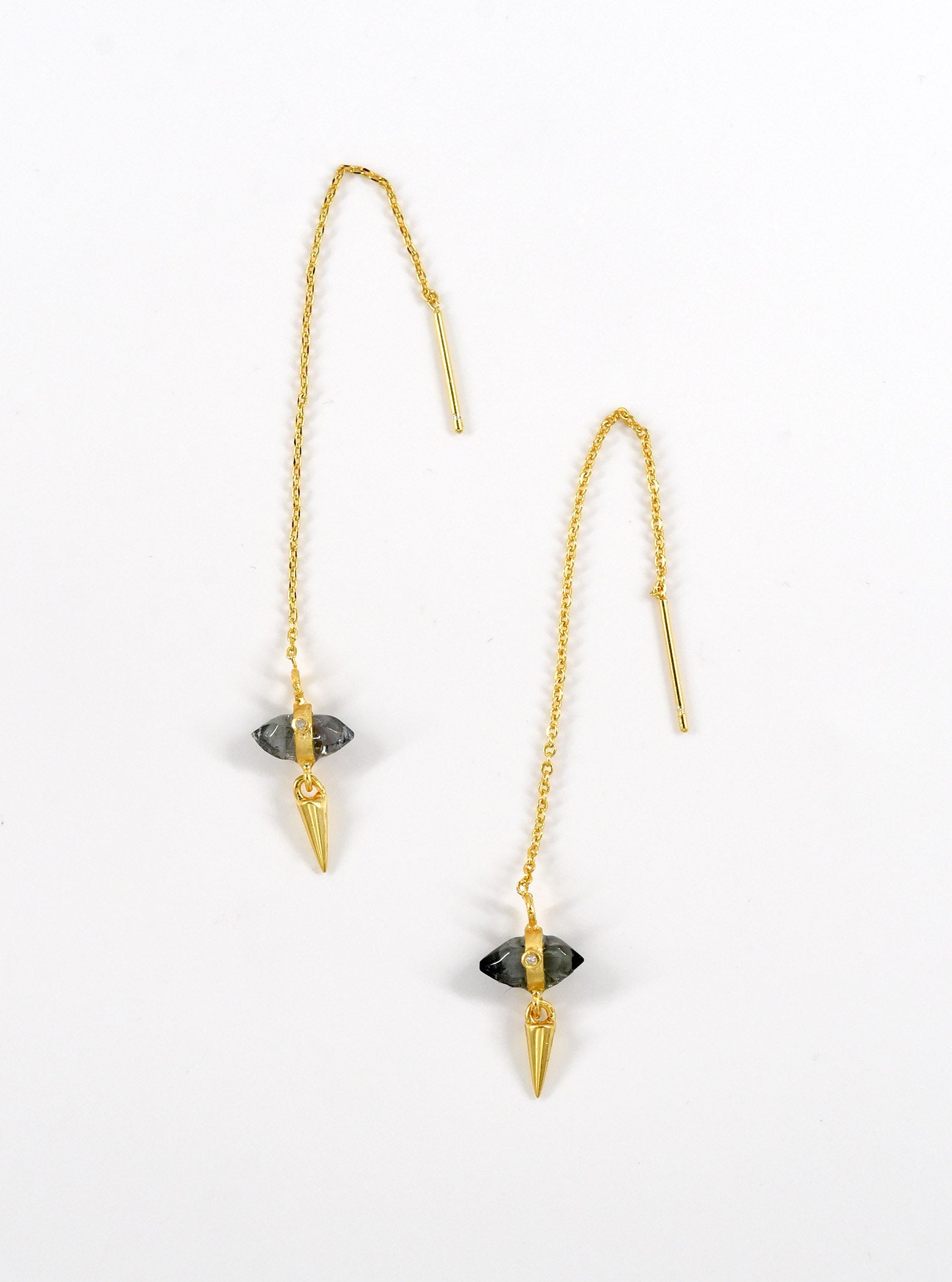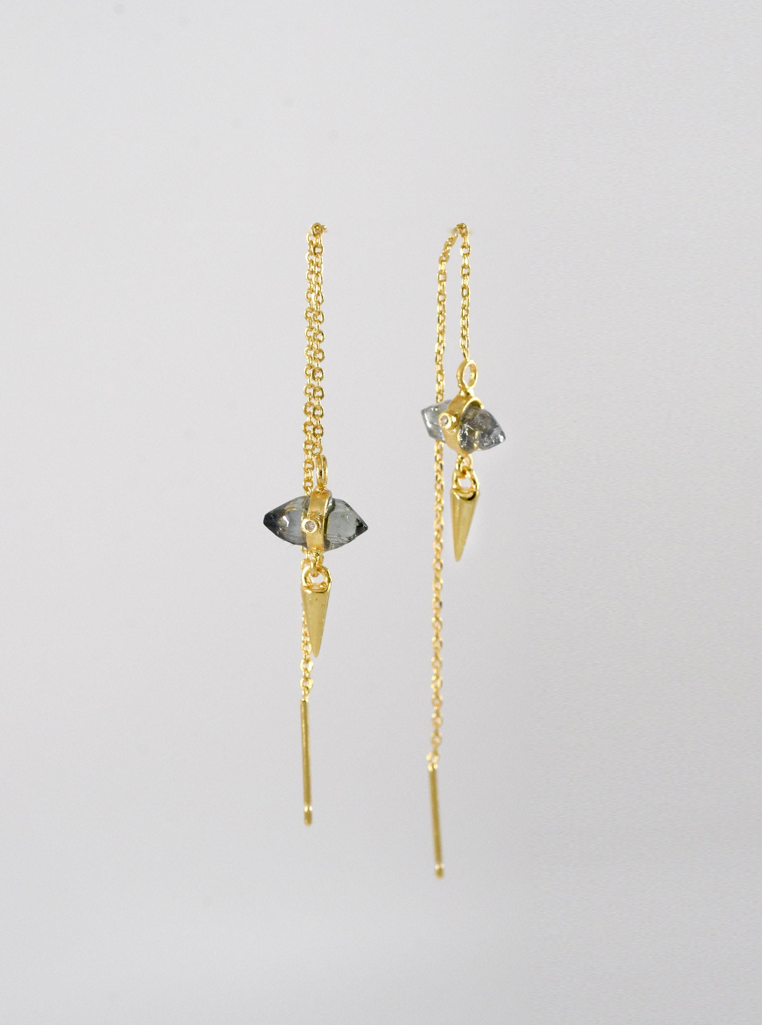 Featuring a one of a kind natural Tourmaline with chain in a hand crafted setting, sparkling natural diamond accents and brushed finished with stud back closures.